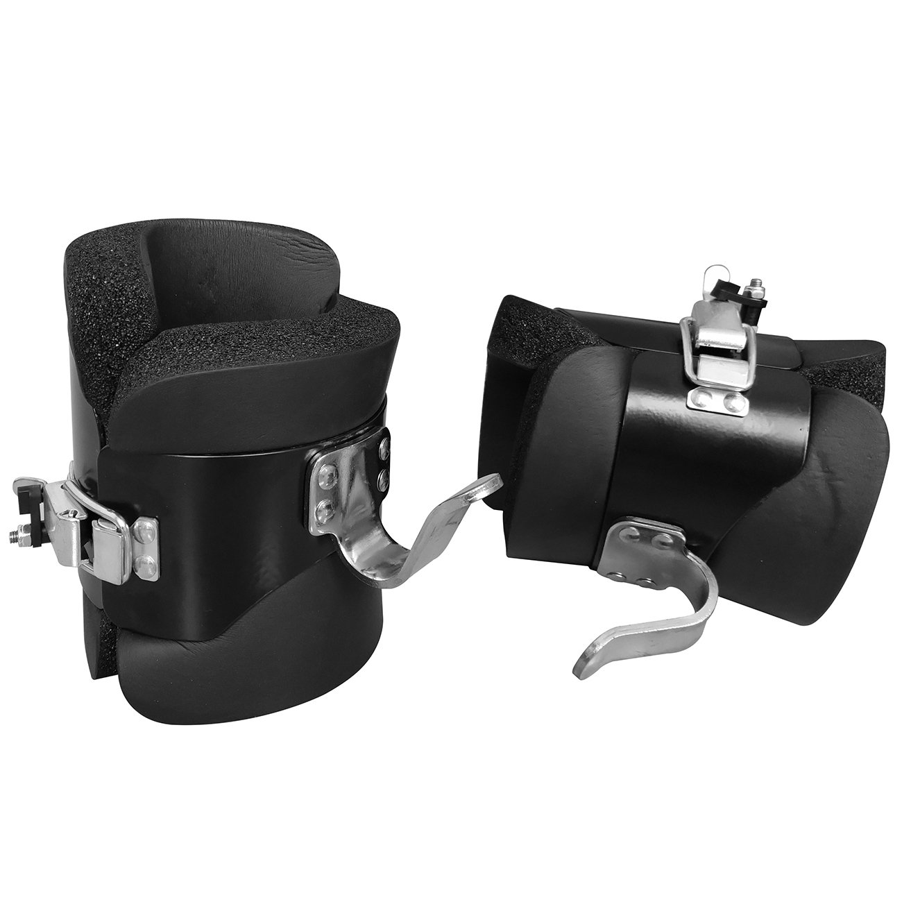 Våre gravity boots festes enkelt på anklene. De har tykk behagelig skumgummi, kraftig metallkrok og sikkerhetslåser på spennene.