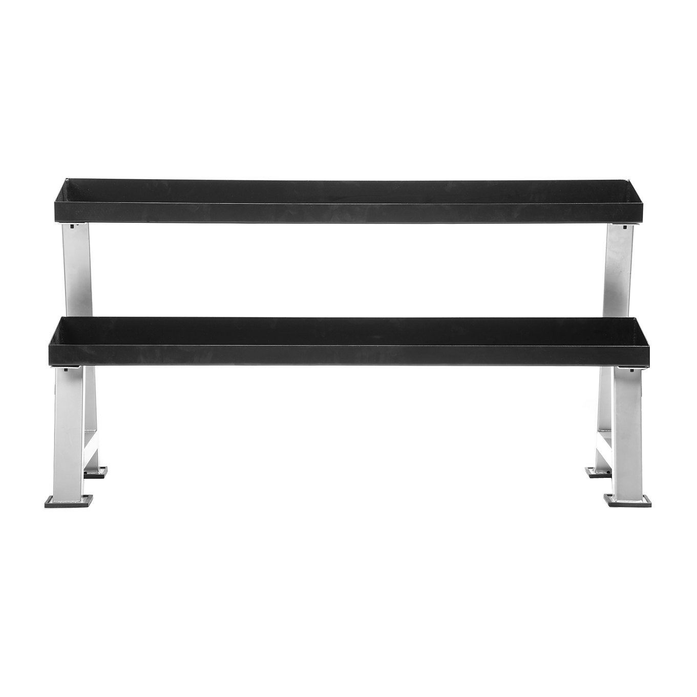 Dette kettlebellstativet lar deg samle og organisere dine kettlebells. Stativet er robust og har to hyller hvor du kan plassere kettlebells. Kettlebellstativet er lavt slik at kettlebells enkelt kan løftes av og på uten å måtte løfte kettlebellen alt for høyt. Det gjør at det derfor også passer fint til de tyngste kettlebells.