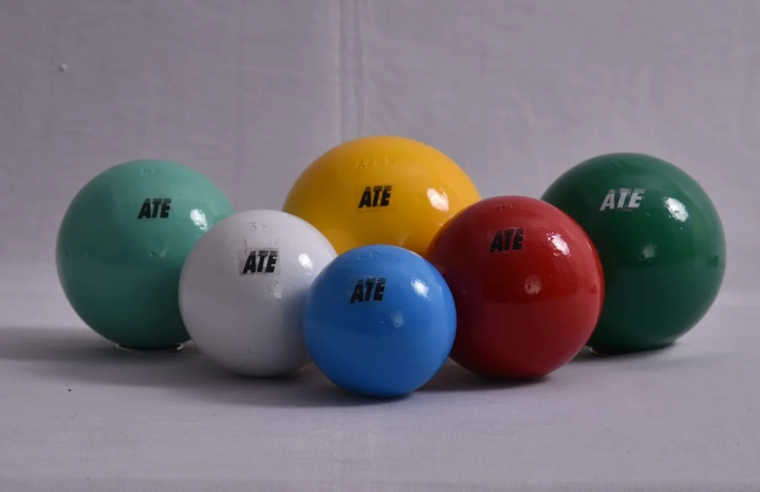 Solide dreide jern kuler. Diameter etter IAAF sine spesifikasjoener. Myk holdbar maling.