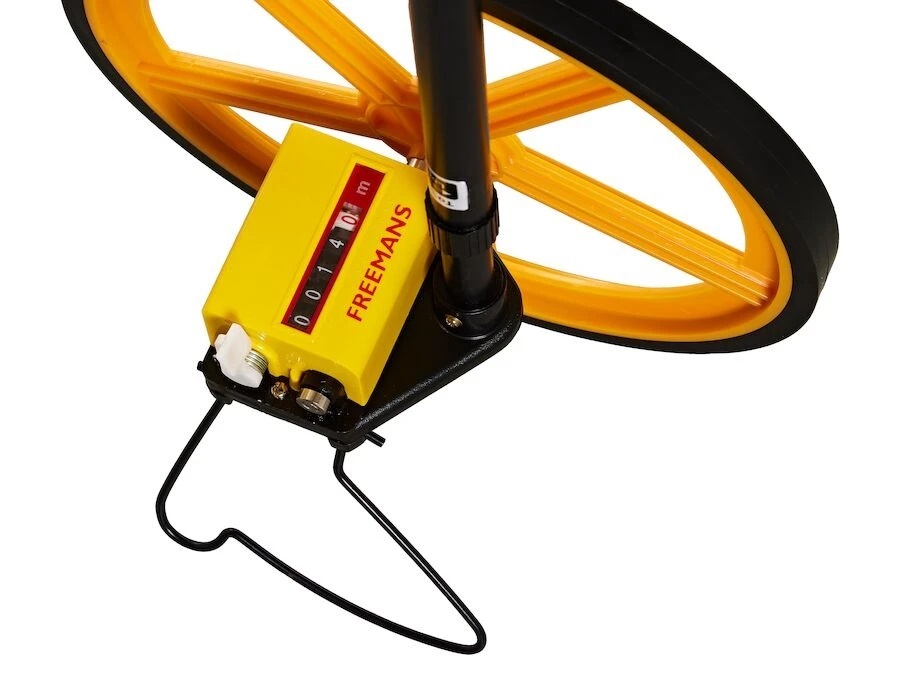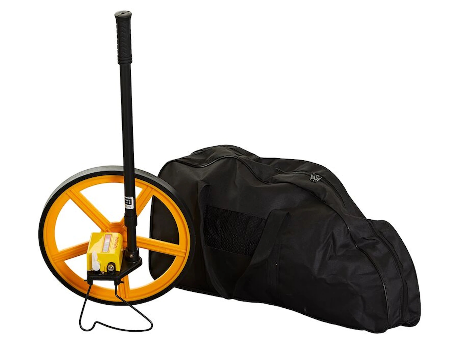 Måleapparat med justerbart teleskophåndtak for enkel transport. Uunnværlig for oppmåling av baner, terrengløp etc.